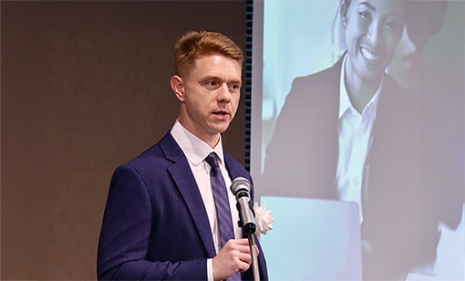 主催者講演では、主催者LTG社Open LMS部門APACリージョナルディレクターLiam Liddicoat(リアム・リディコート)より、日本の高等教育が直面するDXの課題と、AIやデータ活用による新しい学びの可能性について講演しました。