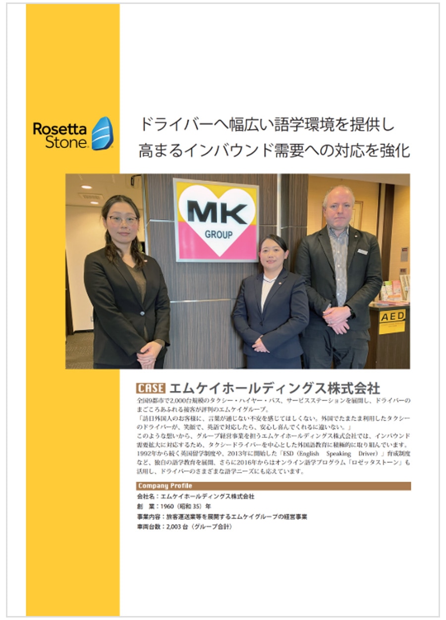 1992年から続く英国留学制度や、2013年に開始した「ESD(English Speaking Driver)」育成制度など、独自の語学教育を展開、さらに2016年からはオンライン語学プログラム「ロゼッタストーン」も